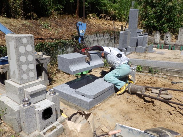 墓石組み上げ作業