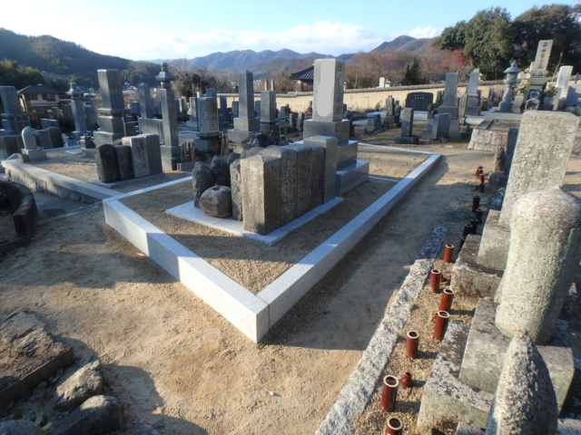 ご先祖様のお墓を整理し、石の囲いを設置しました