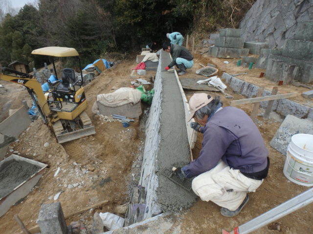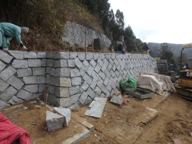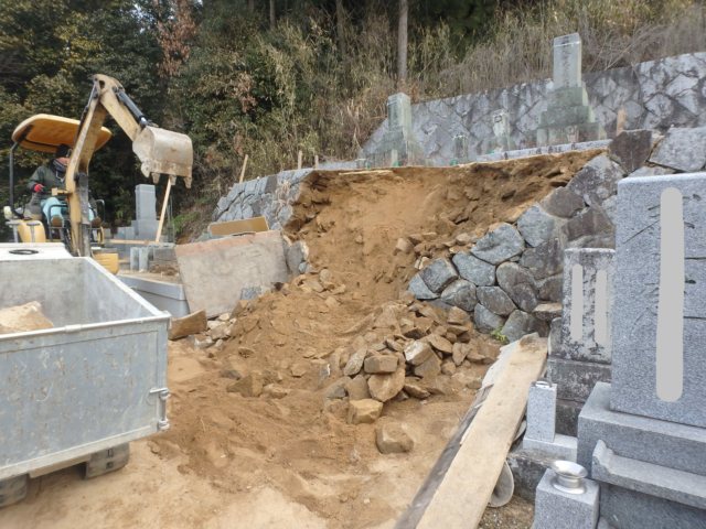 既存の石積みを解体します