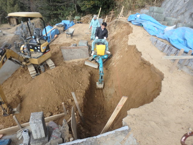 安定した地盤まで床掘りします